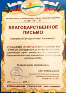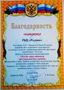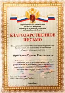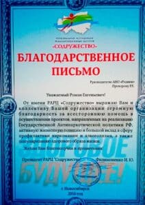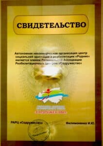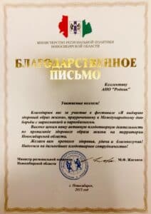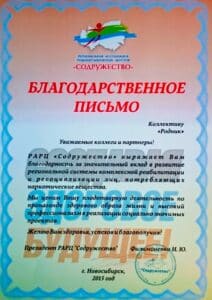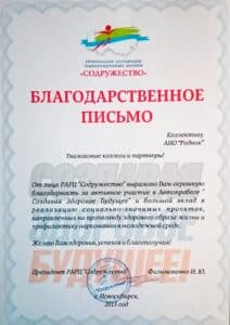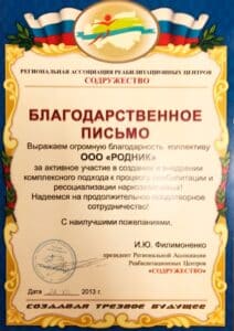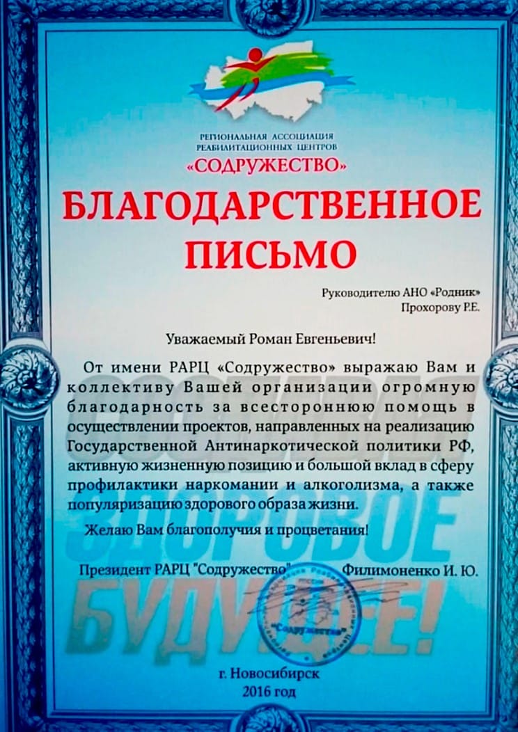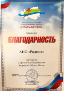 Cертификаты, благодарственные письма, грамоты и прочие удостоверения АНО «Родник»